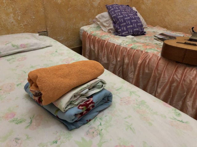 泊まる